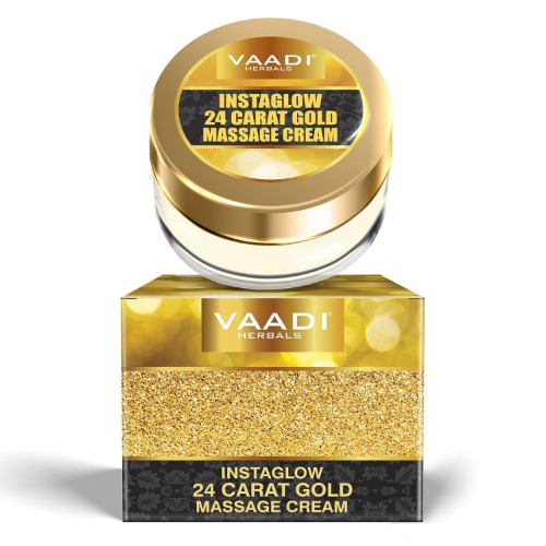 Infused with 24-carat gold leaves and wheat germ oil, this luxurious massage cream delivers an immediate and noticeable radiance to your facial skin. It enhances your skin with a lasting luminous finish, smooths the skin tone, and promotes a youthful appearance. The addition of kokum butter ensures deep hydration, leaving your skin feeling soft and rejuvenated. Perfect for those seeking a balanced and comprehensive skincare experience.