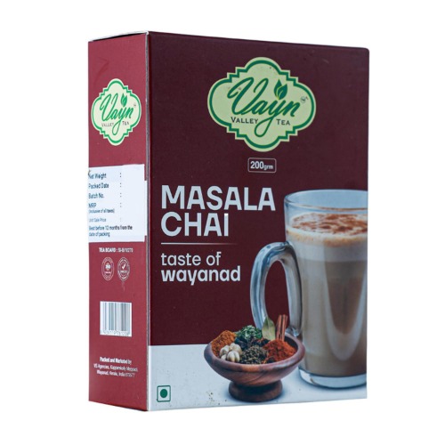 Experience the authentic taste of Wayanad with this Masala Chai Tea, crafted from premium tea leaves and a rich blend of natural spices. Enjoy a pure and natural flavor, free from artificial additives, with a perfect balance of bold tea and aromatic masala. Savor the rich aroma and refreshing taste in every cup. Packaged in a convenient 200g size, ideal for preparing multiple servings of delicious chai. Discover the traditional tea culture of Kerala with every sip.