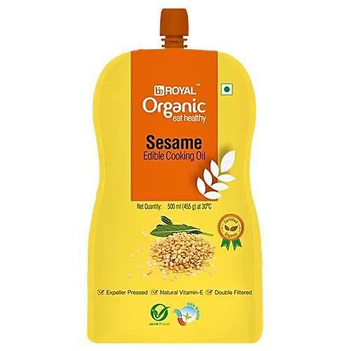 Enhance your culinary dishes with Organic Sesame Edible Cooking Oil. Cold-pressed from high-quality sesame seeds, this oil provides a rich, nutty flavor and a subtle aroma, perfect for stir-fries, dressings, and marinades. ◦ Rich in essential fatty acids, including omega-6, which support heart health and overall well-being. ◦ Contains antioxidants like sesamol and sesamin, which help protect against oxidative stress and support a healthy immune system. ◦ High in monounsaturated and polyunsaturated fats, aiding in lowering LDL cholesterol levels and supporting heart health. ◦ Features anti-inflammatory properties that can help reduce inflammation in the body. ◦ Free from anti-foaming agents, which may cause foaming when heated. To minimize foaming, add a small piece of tamarind while heating. This indicates the oil is minimally processed and pure.