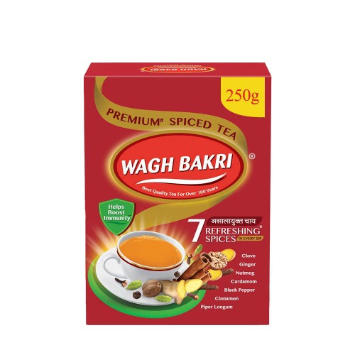 Indulge in the rich and invigorating flavors of this Premium Spiced Tea, a harmonious blend of seven authentic Indian spices meticulously crafted for an exceptional taste experience. Savor the exotic aromas and flavors of cardamom, cinnamon, black pepper, clove, ginger, long pepper, and nutmeg in every sip, creating a delightfully refreshing and aromatic tea. Crafted with premium quality tea leaves and carefully selected spices, this tea offers a balanced and comprehensive flavor profile that tantalizes the senses. Enjoy the potential benefits of this spiced tea blend, which may contribute to overall well-being and vitality. Embrace the tradition and expertise of Wagh Bakri, a renowned brand with over a century of experience in delivering exceptional tea products. Explore the full range of Wagh Bakri's premium tea offerings, including their Premium Leaf Tea and Strong Dust Tea, to discover your perfect cup.