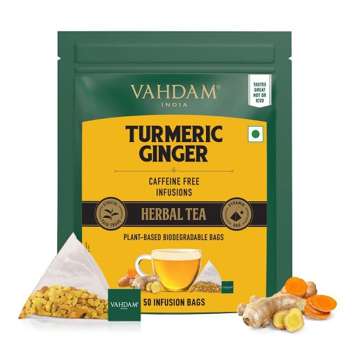 Turmeric Ginger Herbal Tea (Té de Hierbas de Cúrcuma y Jengibre | Vahdam) 50teabags